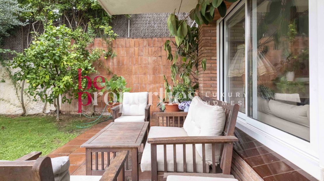 El jardín mediterráneo que rodea la vivienda tiene césped, árboles frutales, zona de porche, comedor de verano, barbacoa y piscina salina con muchísima privacidad.