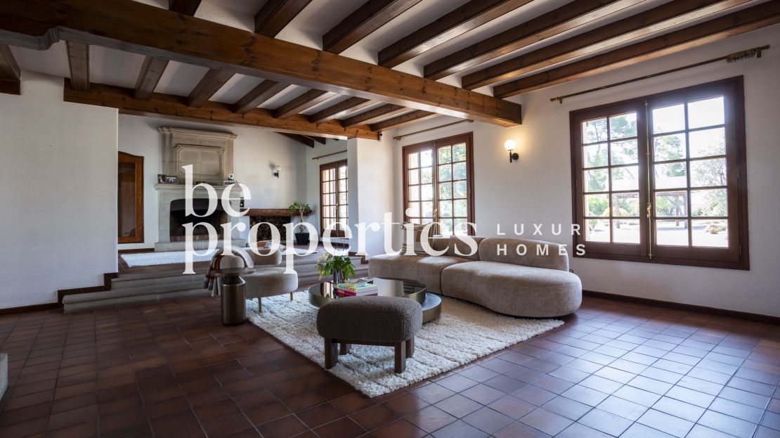 Descubre esta exclusiva casa unifamiliar en Bellaterra, un verdadero refugio de paz y confort. Con una superficie construida de 586 m² y una amplia parcela de 2.521 m², esta propiedad destaca por su arquitectura atemporal y grandes ventanales que inundan de luz natural todos sus espacios. La distribución en una sola planta permite disfrutar de un gran salón-comedor con chimenea, ideal para momentos de relax, y una cocina luminosa equipada con mobiliario Siematic y electrodomésticos de alta gama.